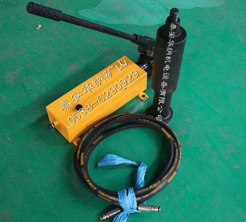 1、松开手动液压泵泄压阀,使空心千斤顶活塞降至低位置,然后把高压胶管两端的接头插.入千斤顶和手压泵的插孔内,并插好U型卡。